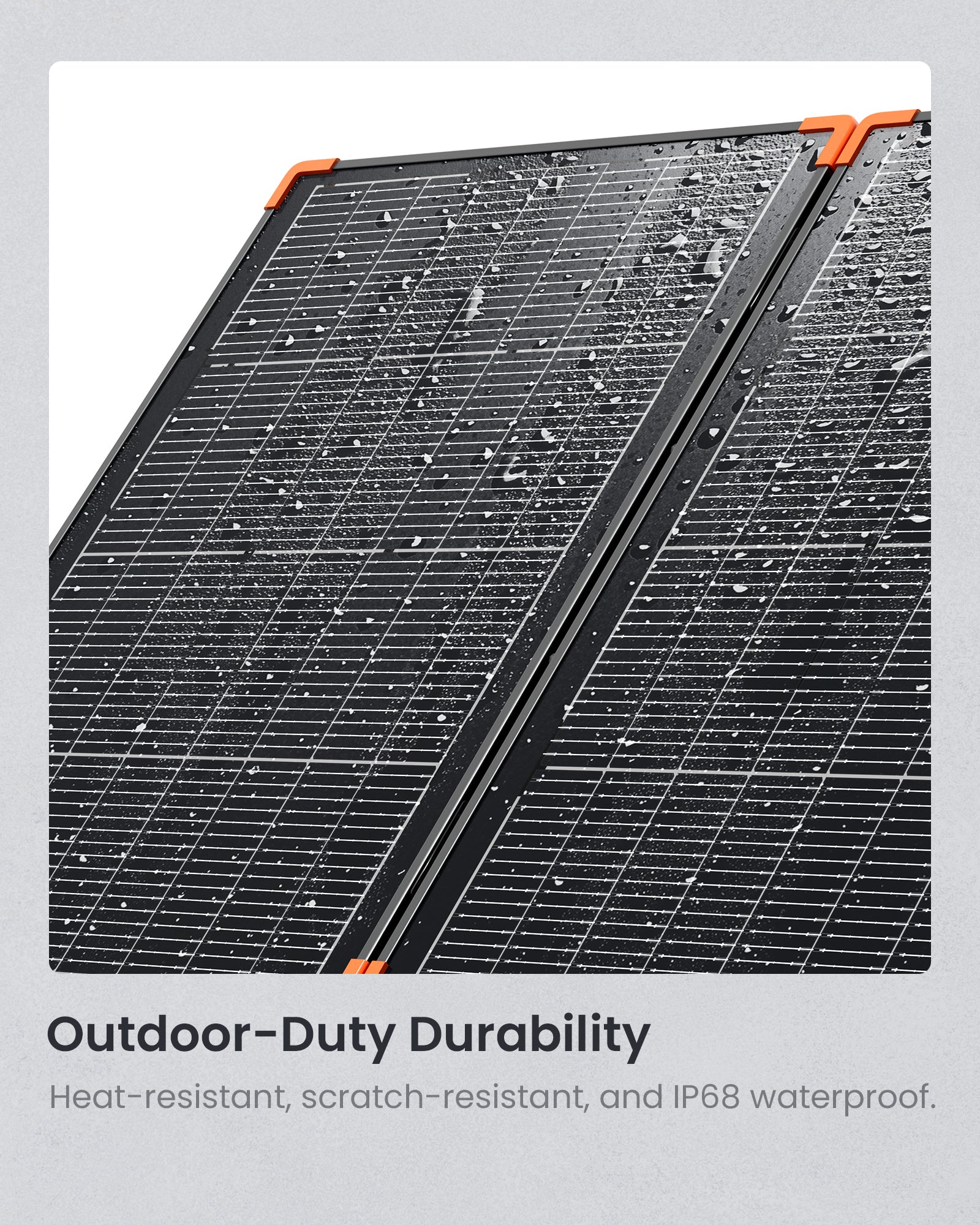 Yes, the ZOUPW 230W tri-fold solar panel features IP68 fully waterproof construction with a built-in waterproof membrane, scratch-resistant composite surface, and sturdy aluminum frame. It withstands rain, dust, and rough handling—perfect for camping, RV living, emergencies, or backyard use in the USA. At just 12.6 lbs with enhanced portability, it's built to last with 3 years warranty and universal 4-in-1 connectors.